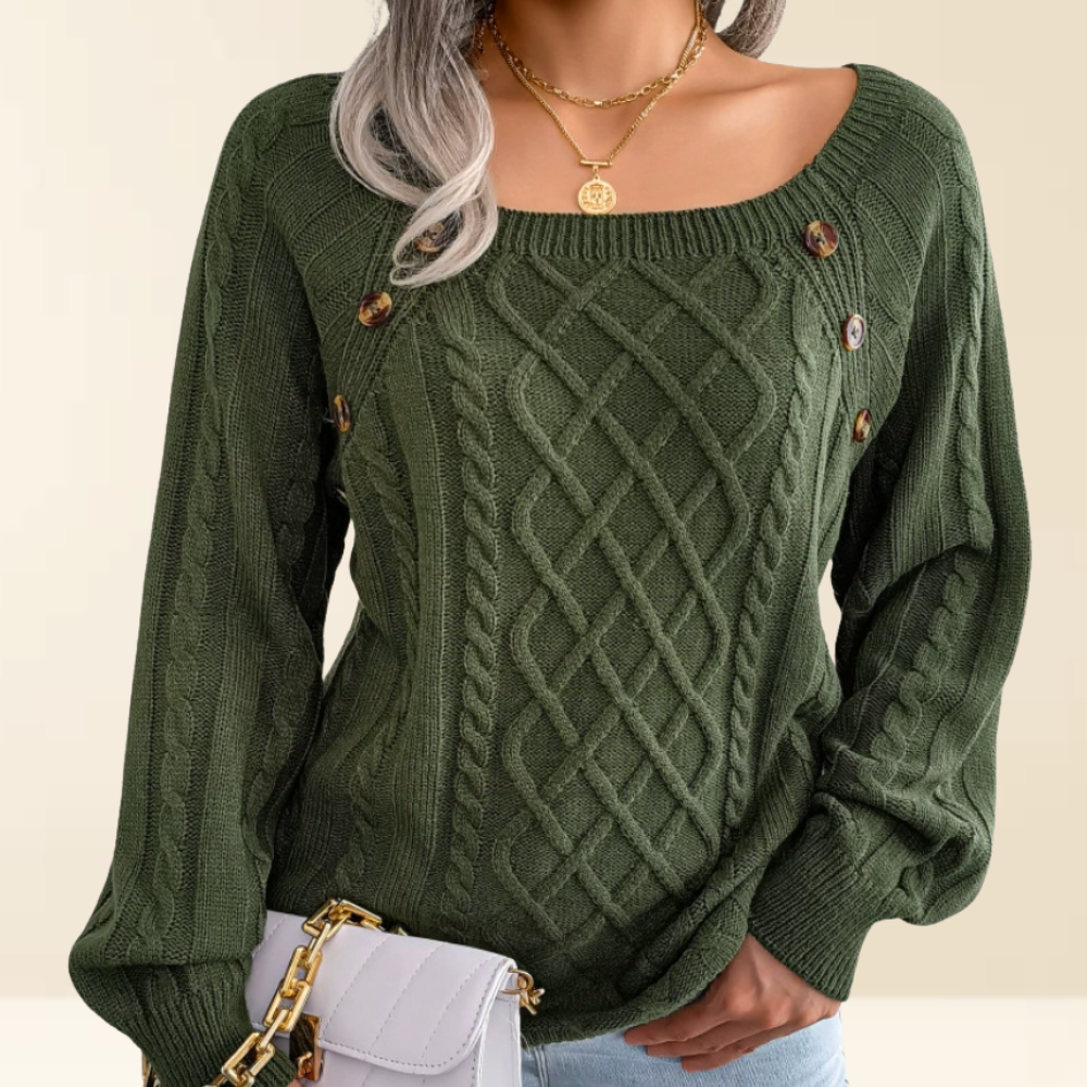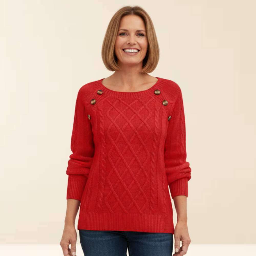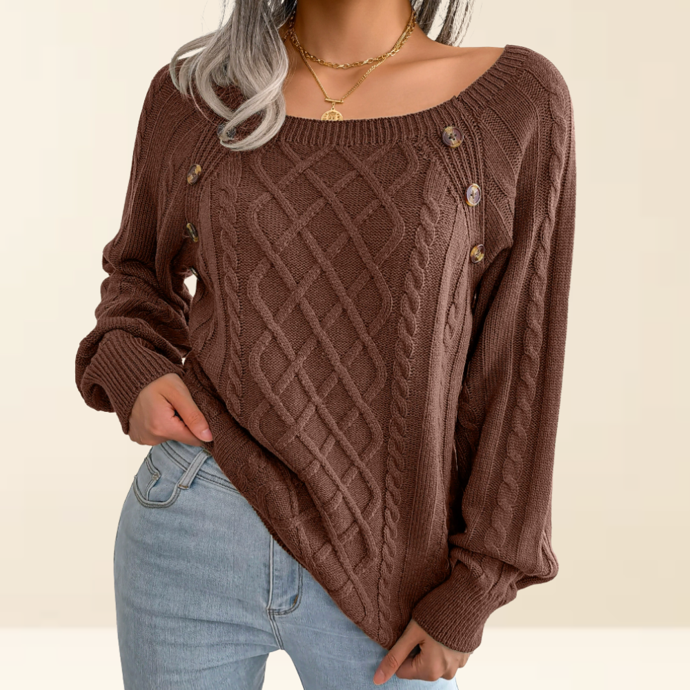 Deze elegante trui met stijlvolle knoopdetails combineert warmte, comfort en klasse in één tijdloos ontwerp.