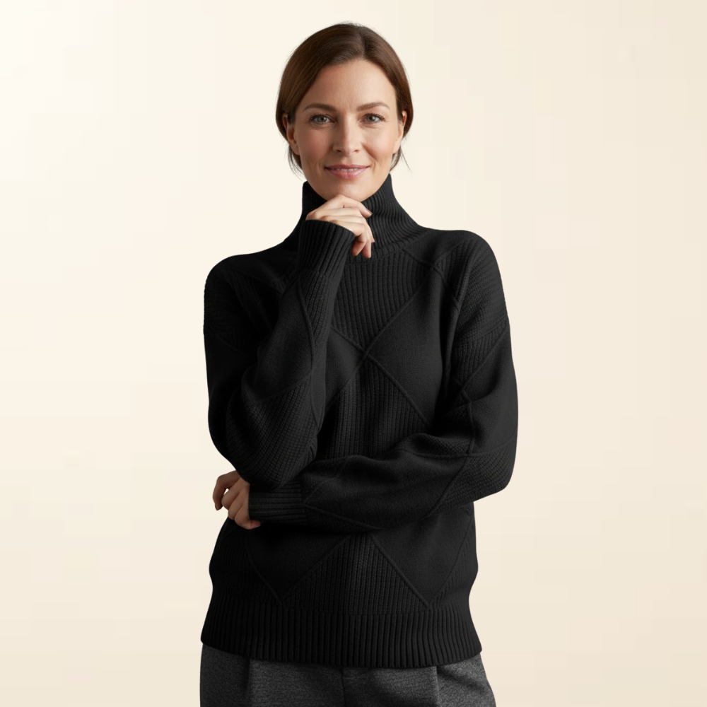 Deze coltrui omarmt je met elegante warmte en een moeiteloze, luxe uitstraling.