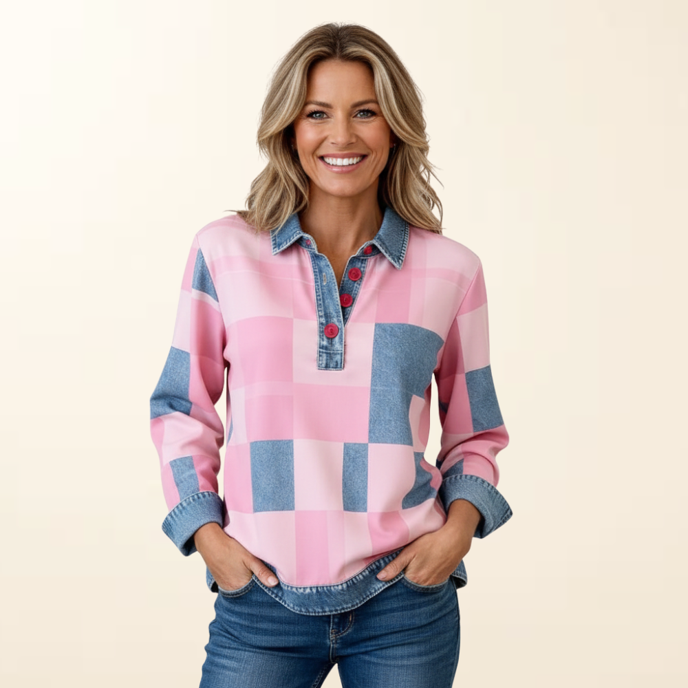 - Knoopsluiting met klassieke kraag voor een tijdloos en vrouwelijk